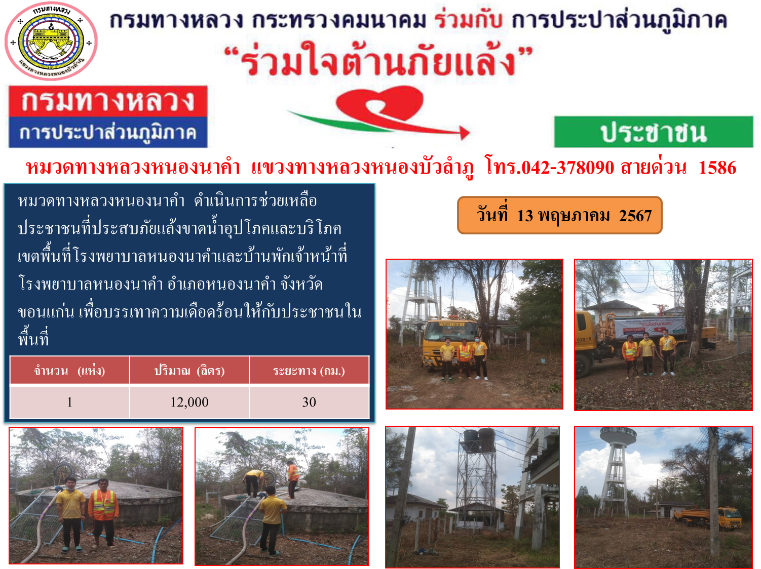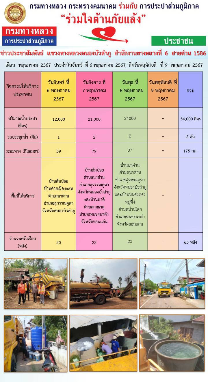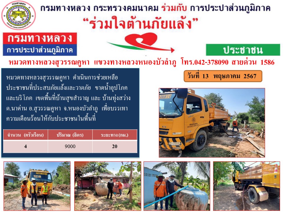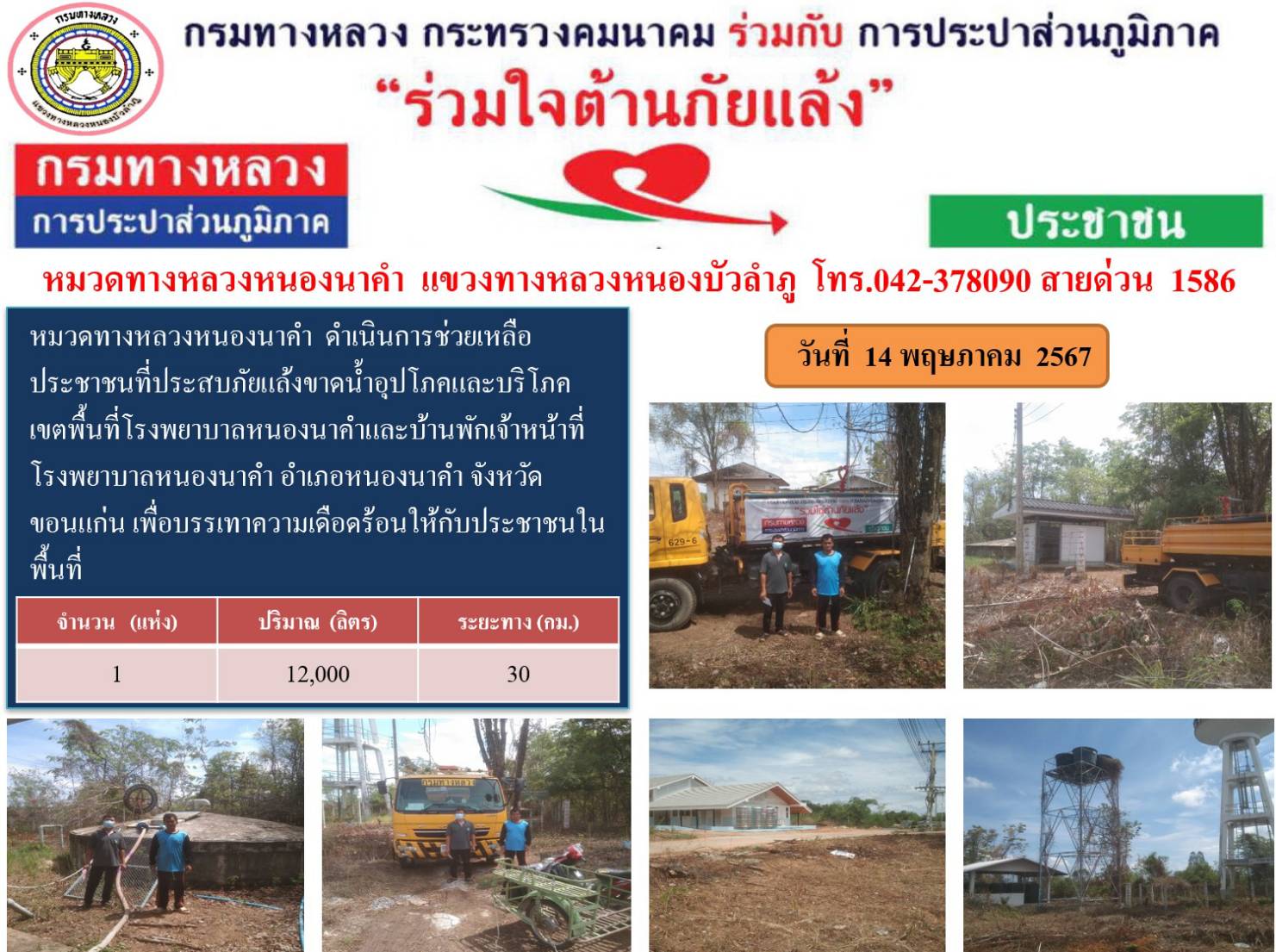 ข้อมูลข่าว : แขวงทางหลวงหนองบัวลำภู ร่วมใจต้านภัยแล้ง ปี 2567
