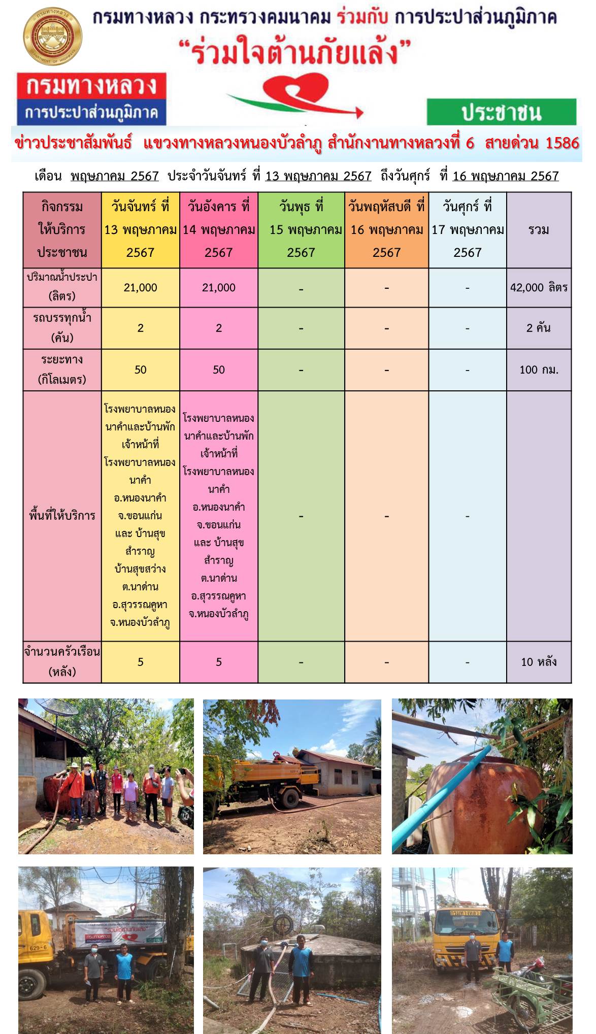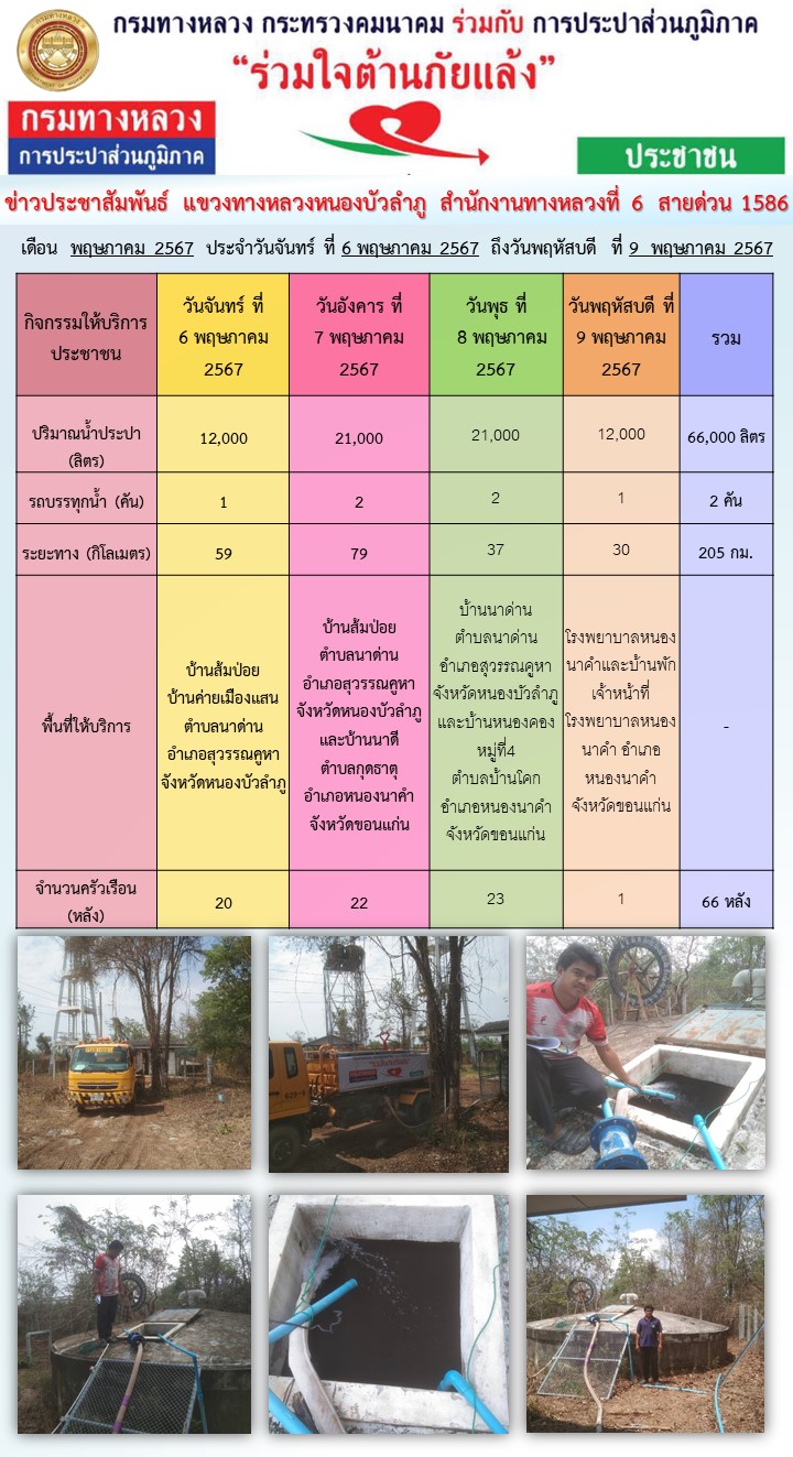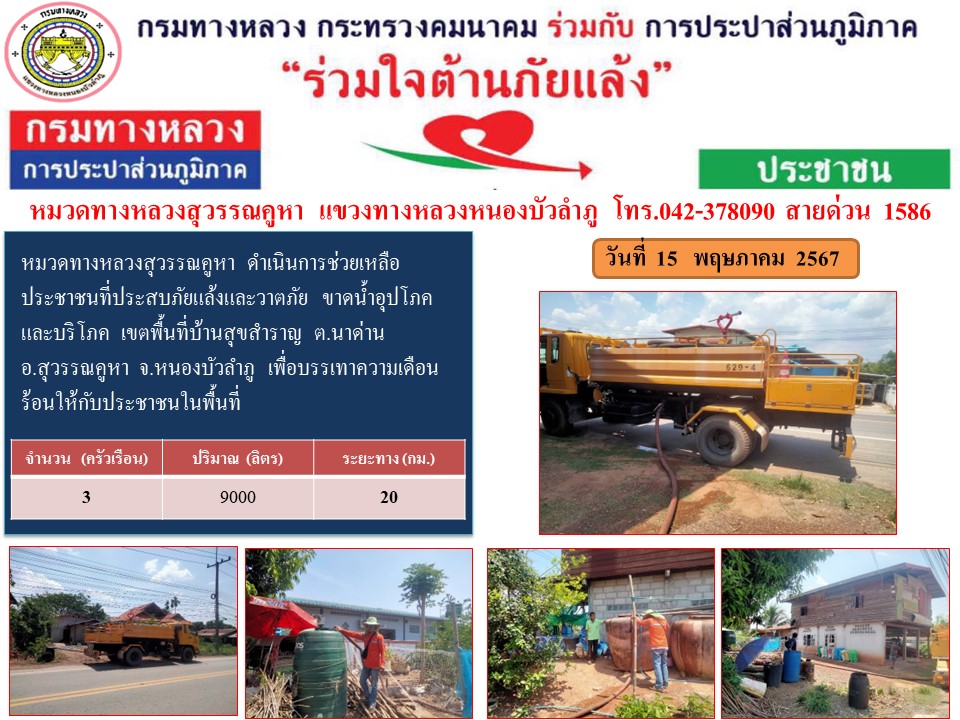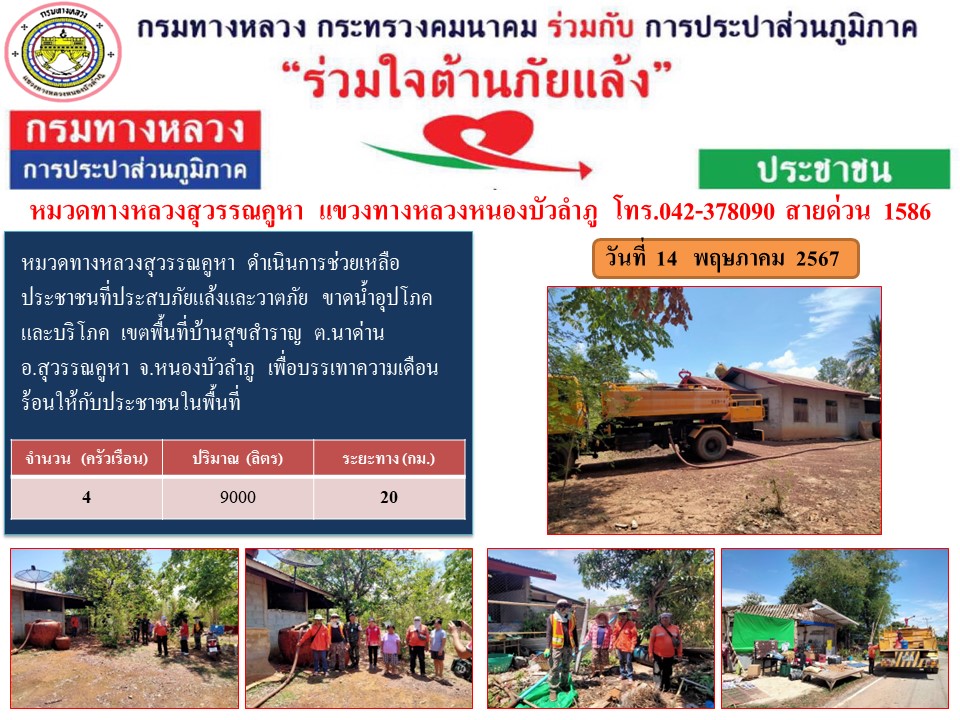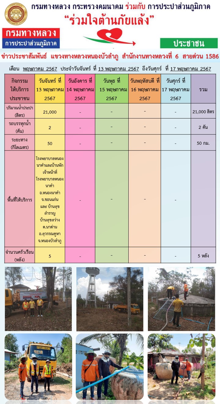 ข้อมูลข่าว : แขวงทางหลวงหนองบัวลำภู ร่วมใจต้านภัยแล้ง ปี 2567