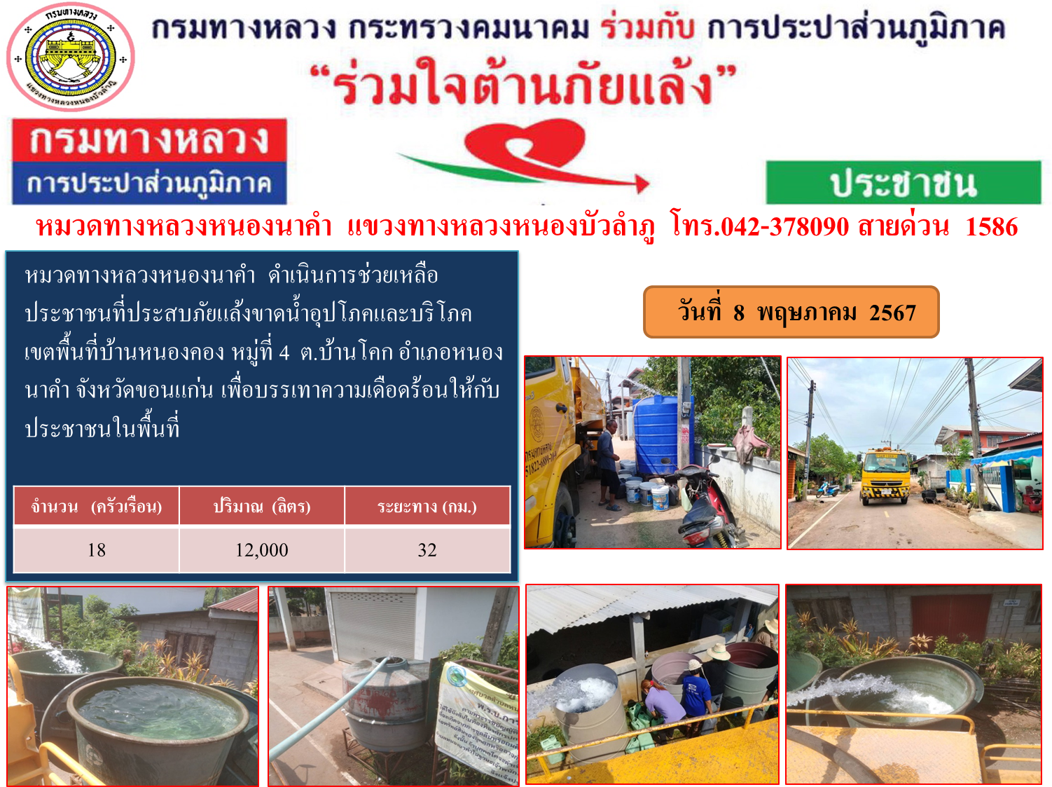 แขวงทางหลวงหนองบัวลำภู ร่วมใจต้านภัยแล้ง ปี 2567